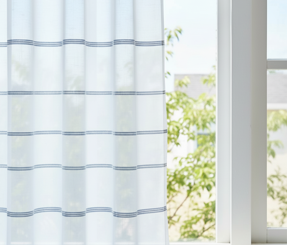 A vízszintes csíkok végig futnak, a csíkok közötti távolság 33 cm. Összesen 7 db csík van benne. Német gyártmányú termék. Közepesen fényáteresztő.
