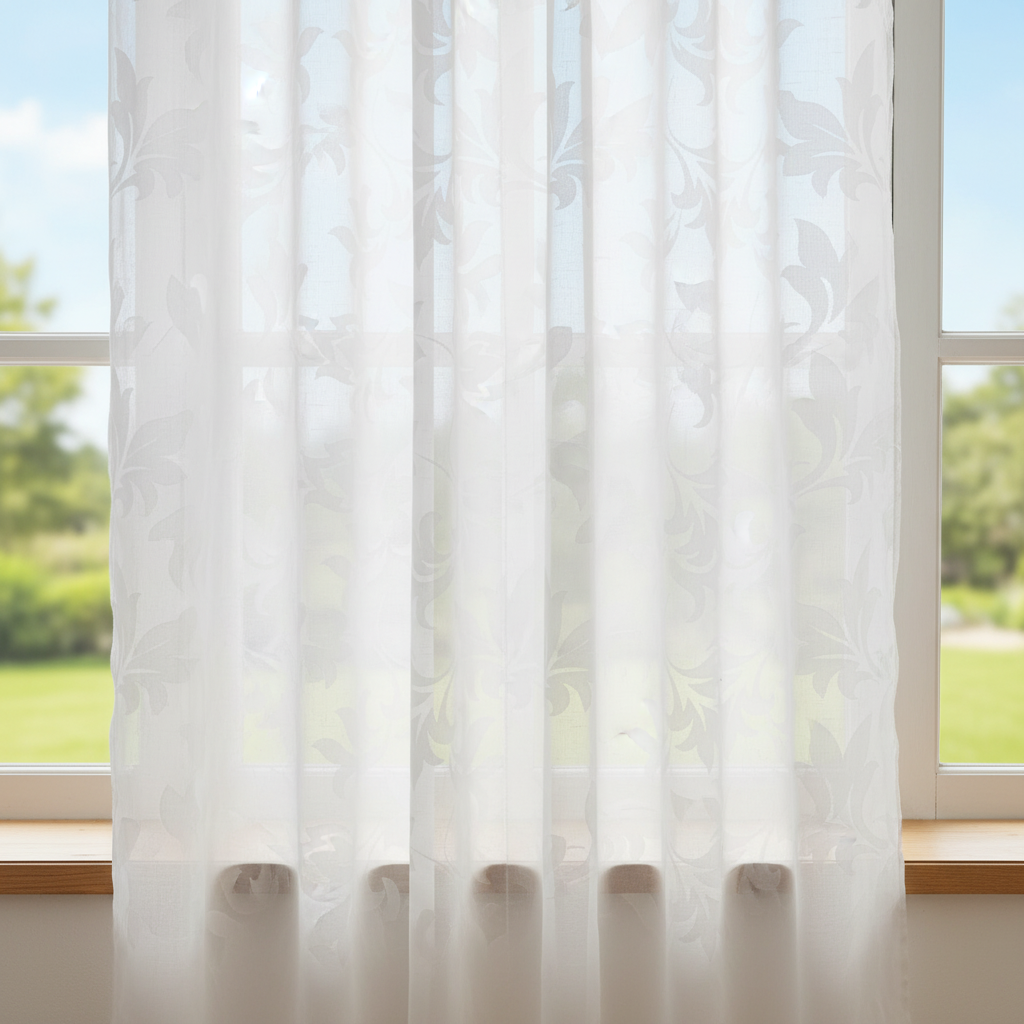Indamintás lenes hatású batiszt törtfehér színben 300 cm magas.