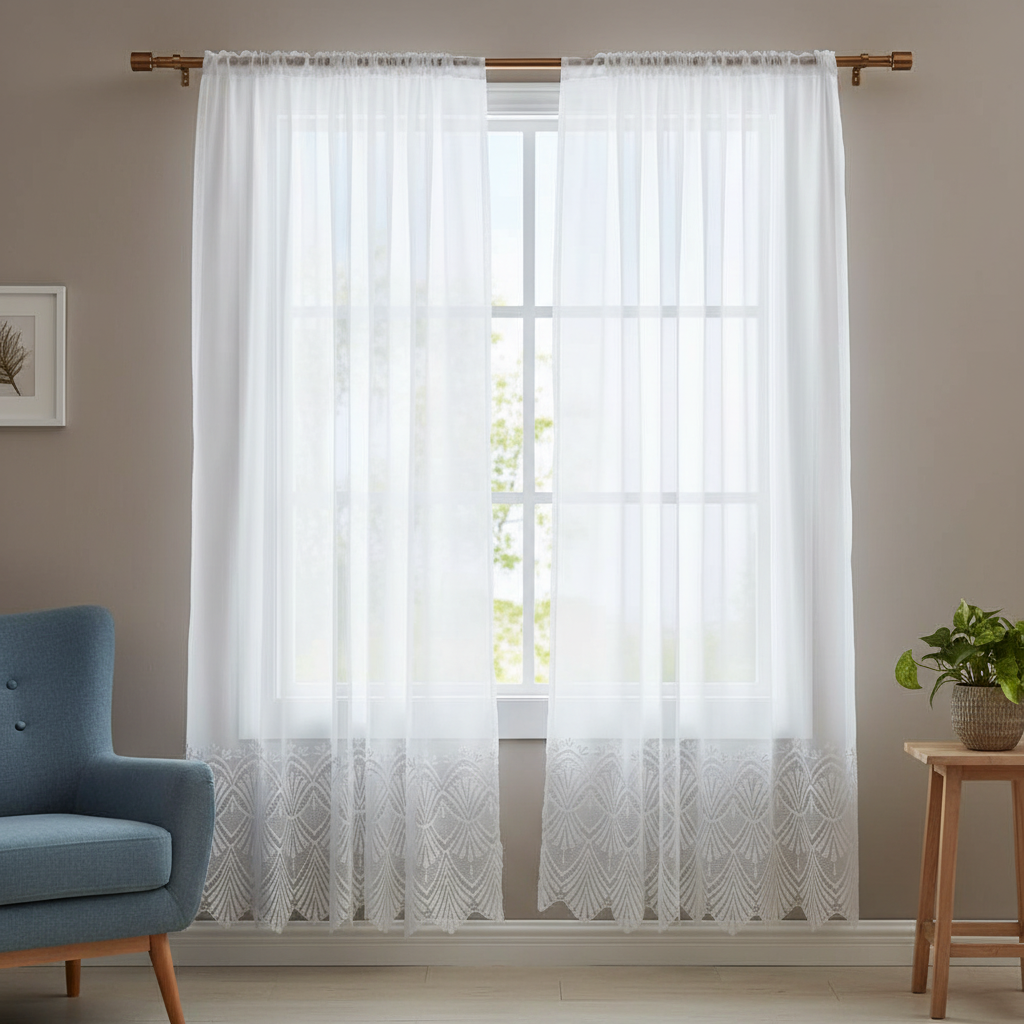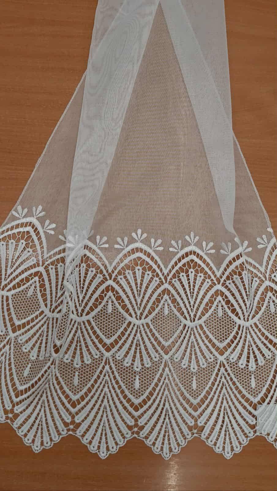 Alul egy sorban applikált (kb.32 cm magasságban), e felett minta nélküli a függöny.