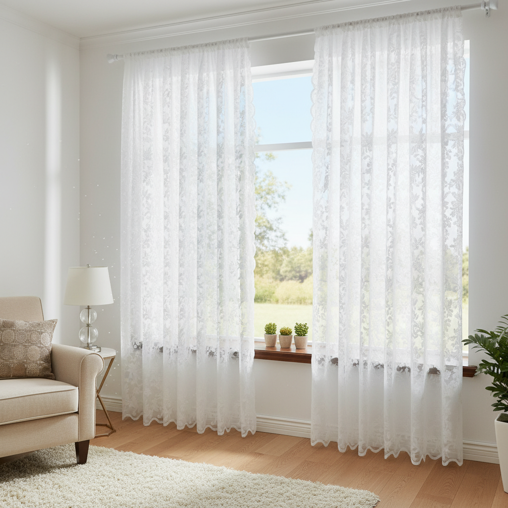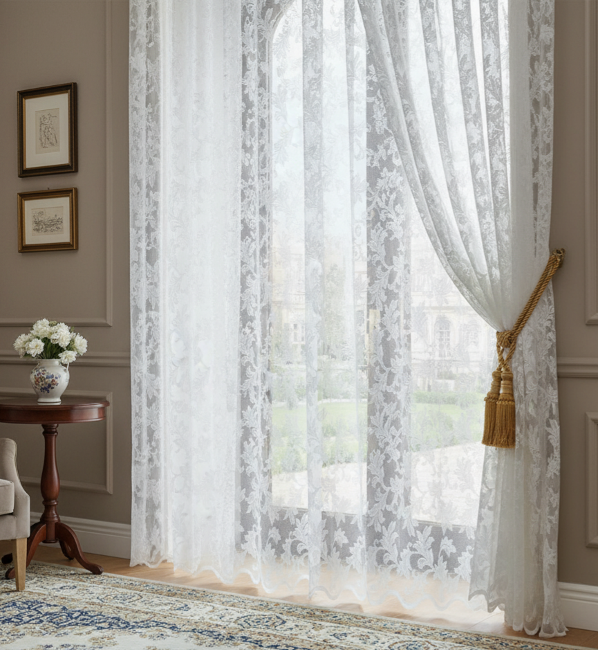 Jacquard liliom mintás függöny elérhető fehér és ekrü színben is. Vasalást nem igénylő anyag.