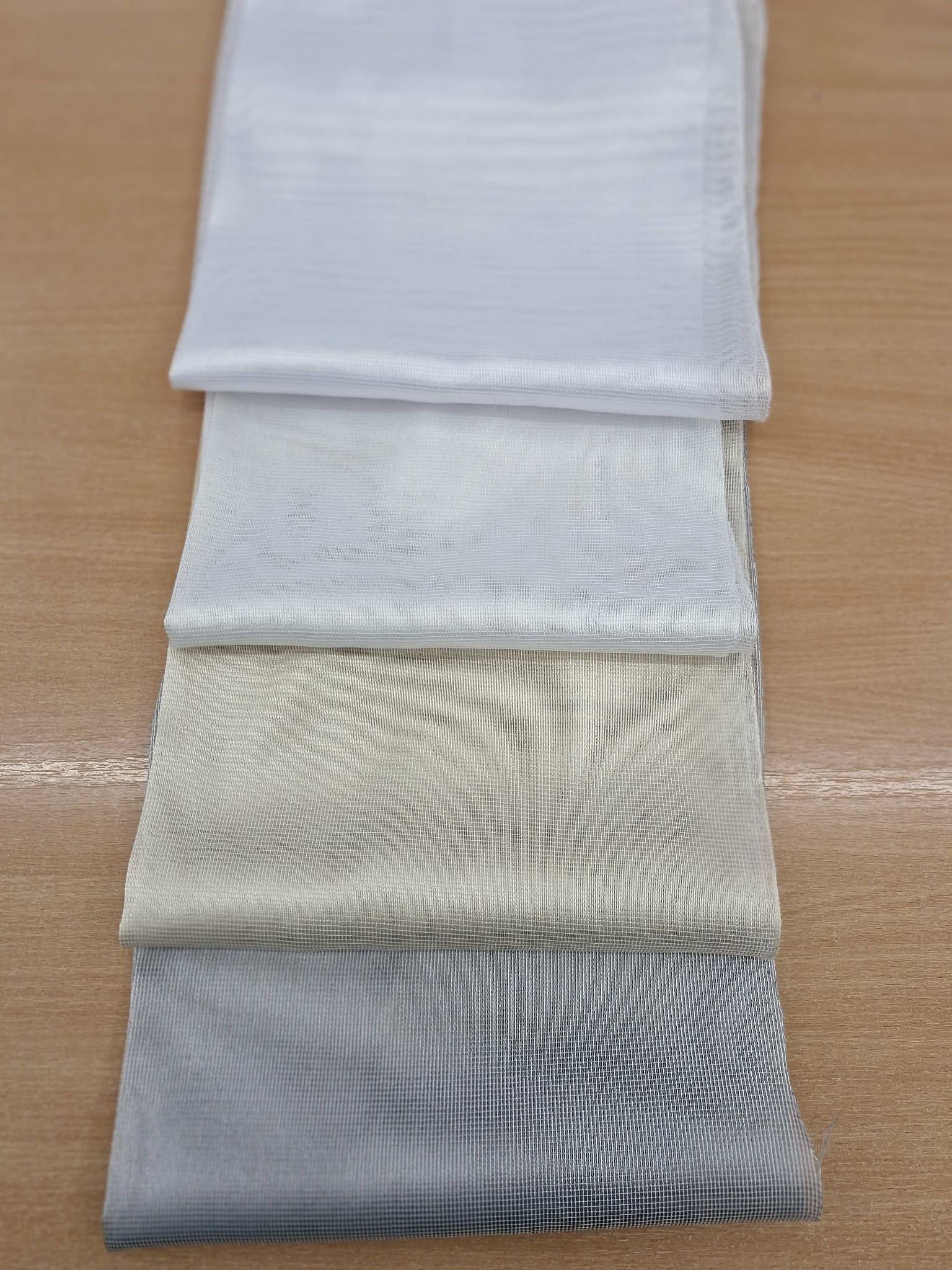 Fényes Míra fényáteresztő organza szürke színben. Alul ólomzsinórral.