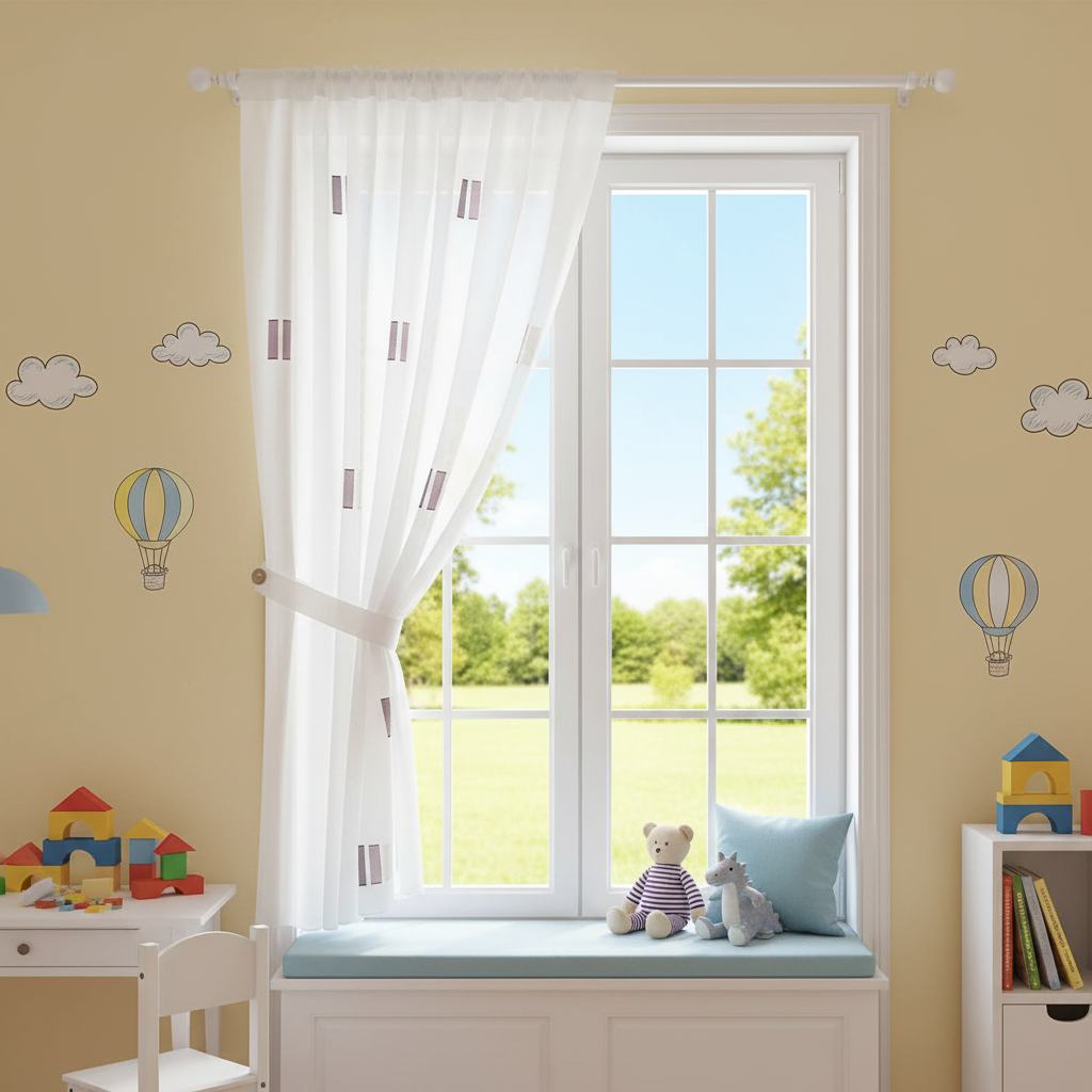 300 cm magas német hímzett voile (hímzés színe sötétlila, lila, krém szín)