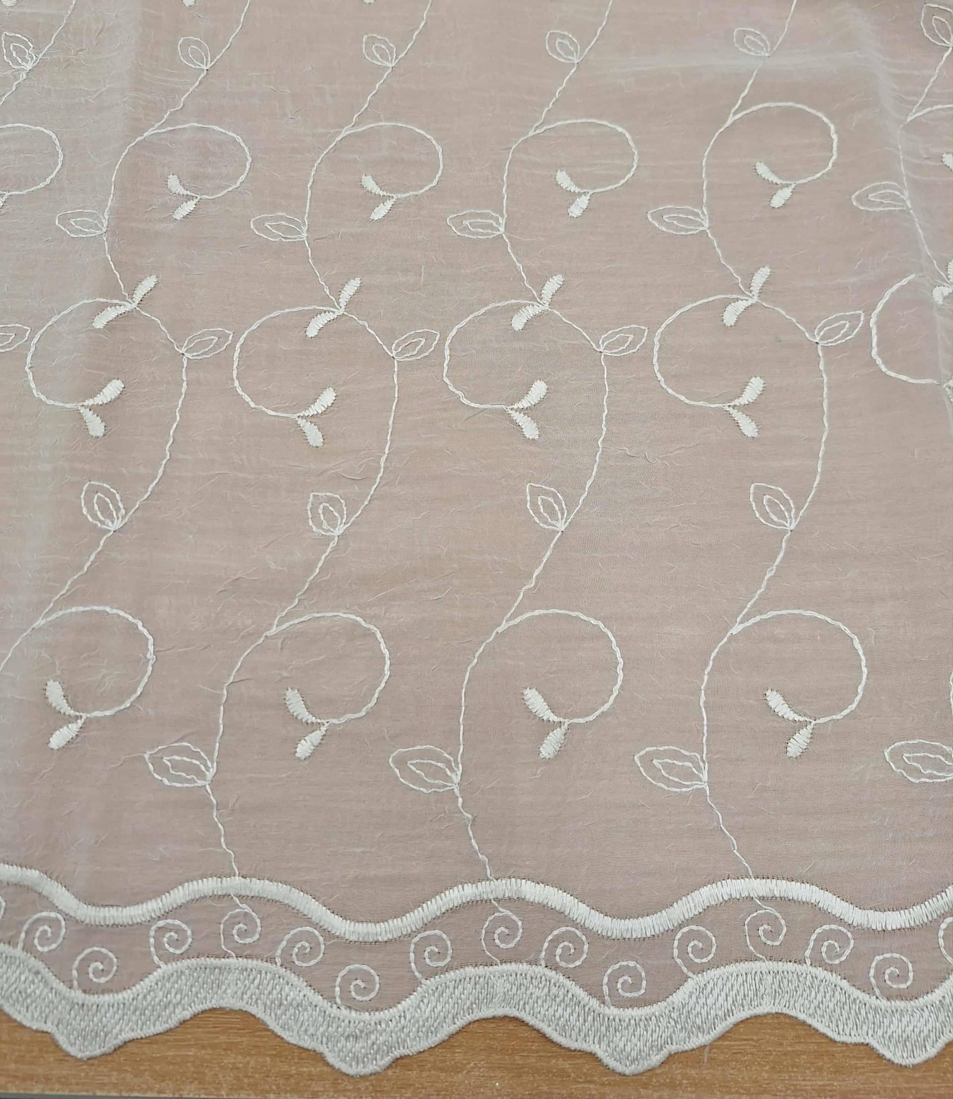 Gyűrt voile függöny törtfehér és ekrü színben is elérhető, alul szép bordűrrel.