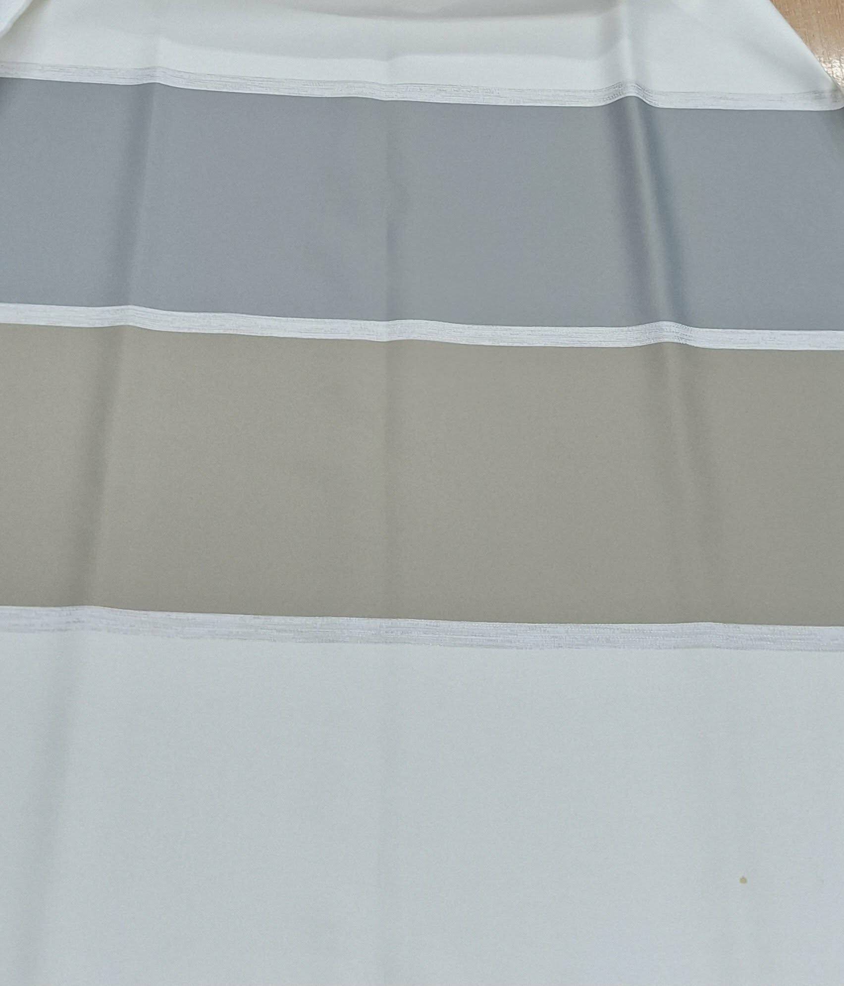 Krém, bézs, szürke színek váltják egymást, 20 cm-es vízszintes csíkokkal.