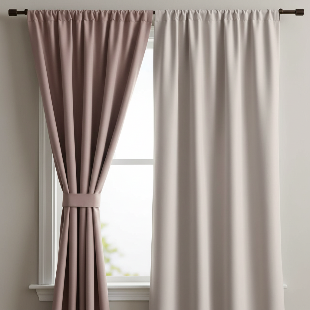 Kétoldalas black-out. Mindkét oldala más színű. A fotón látható a 2 szín.  Emiatt az utcáról mást látni és bent a szobában is mást látni. Ízlés kérdése, hogy bentről és kintről melyik színét szeretnék látni.
